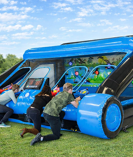 Parfait pour un festival vibrant, une fête de quartier animée ou pour divertir vos participants (comme lors d'un camping), notre laser tag crée des moments inoubliables. En plus, vous pouvez ajouter à votre événement un canon à mousse avec glissade, pour des éclats de rire et une expérience rafraîchissante. Faites de votre événement un véritable succès avec ces activités dynamiques et divertissantes!