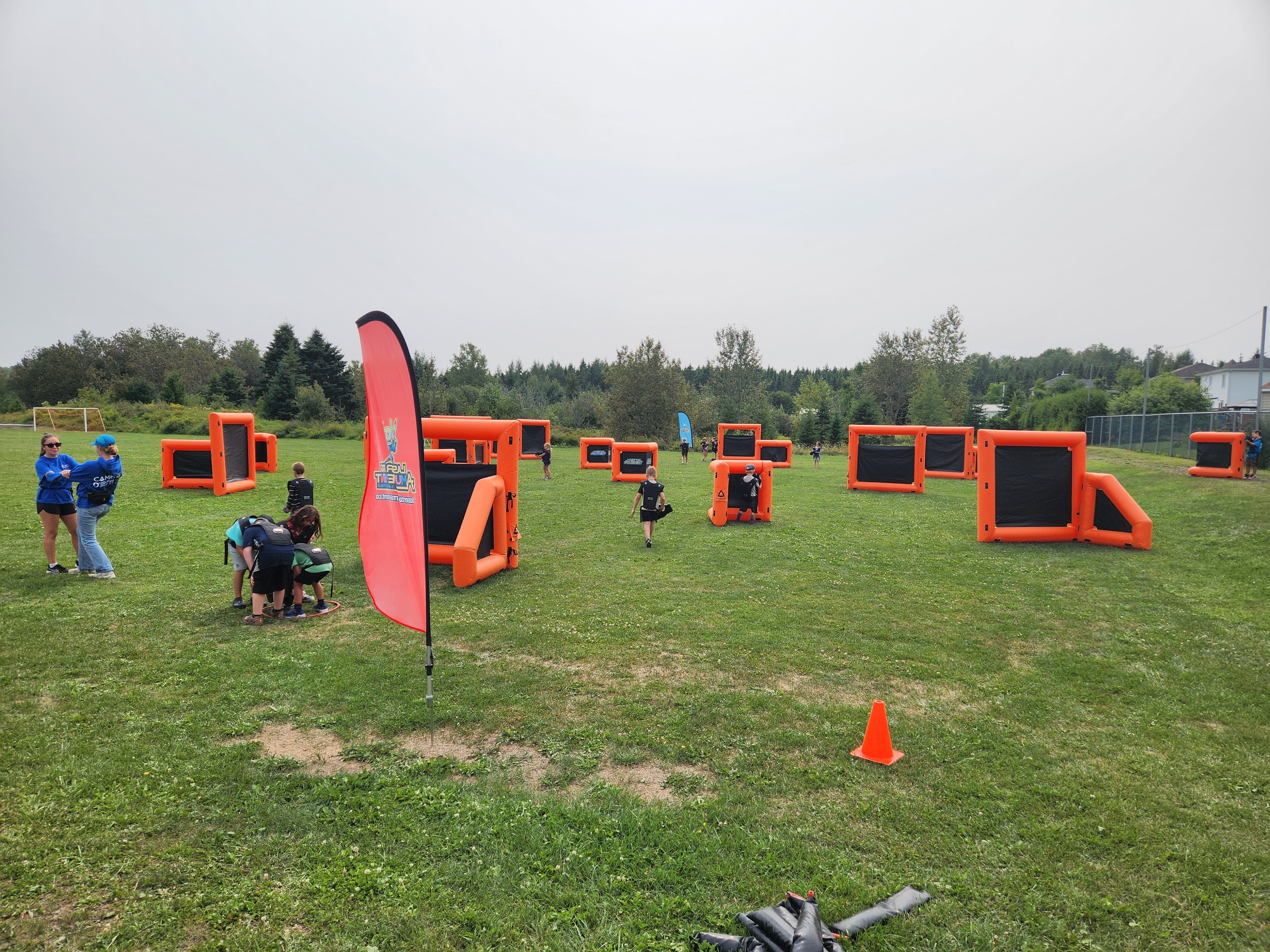 Nous arrivons sur place entre 1h30 avant le début de l'activité pour installer notre parcours de murs gonflables.